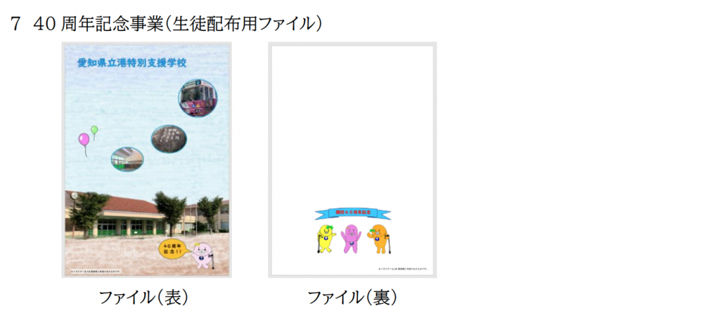 本校は、令和6年度に開校40周年を迎えました。そこで、記念となるファイルのデザインを商業科で行いました。商業科生徒が描いた絵と撮影した写真を使い、「明るく」「夢」のある雰囲気を意識して作成しました。また、背景となる青空と地面は、商業科全生徒が描いたものを、少しずつ切り取ってグラデーションにした後、エアブラシでなじませています。みんなの力を結集した作品が、文化祭後に全校生徒へ手渡され、商業科生徒も感無量でした。貴重な経験ができました。